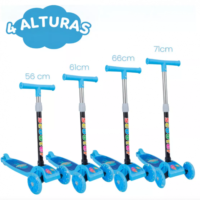 3 g'ildirakli LED chiroqlari, u har qanday muhitda, amaliy va funktsional bo'lib, amaliy va funktsional bo'lib, orqada nazorat uchun orqa tormoz bilan ajralib turadi. 3 yoshdan kelgan bolalar uchun ideal, bu skuter ochiq yurish va o'yinlar uchun juda mos keladi.