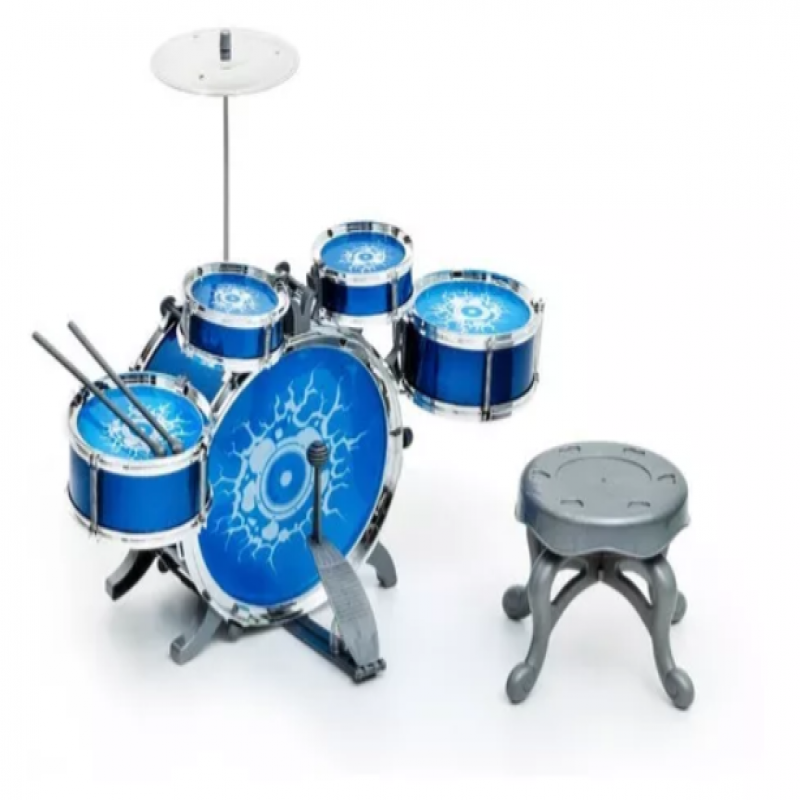 BATERIA INFANTIL ROCK N' ROLL COM BANQUINHO E BAQUETA MENINOS