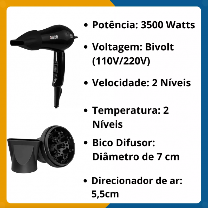 Sochni quritadigan quritgich uyning kuchi va amaliyligini birlashtiradi, tezkor va samarali quritilishi uchun 3500 vatt. Uning ixcham va engil dizayni uni sayohatni osonlashtiradigan tutqichli tutashtirish uchun ideal qiladi. Mahsulot kuchlanish almashinuvi orqali 110V va 220V gacha tanlash imkonini beradi. Ushbu to'plamda foydalanishda ko'p qirrali narsalarni taqdim etadigan havo direktori va diffuzer ko'krak qafasi mavjud.