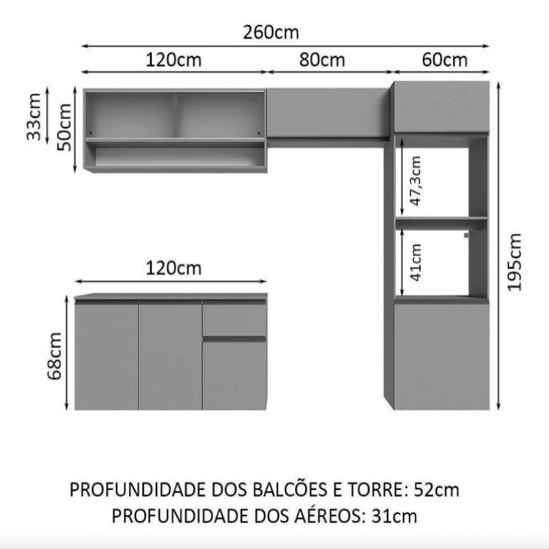 Oshxona kkkasbi to'xtatilgan 260 sm kulrang chiroyli Madesa 11
