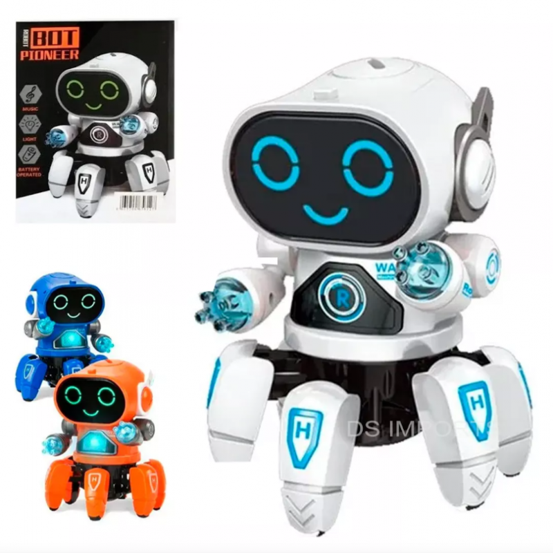Raqs o'rgimchak roboti, 6 ta oyoq bor, yuradigan, kuylash, rang-barang nurga ega, oyoqlari va qo'llarini qimirlatadi; Bolalar e'tiborini jalb qilish va uyni yoritadigan juda qiziqarli o'yinchoq.