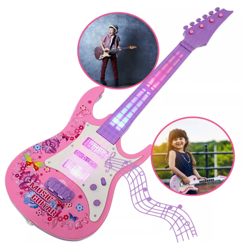 Guitara sizning kichkintoyingizni haqiqiy bolalarning musiqiy asbobidan foydalanish hissi bilan ta'minlaydi va 5 yosh yoki undan katta bolalar uchun ajoyib sovg'a variantidir. Tugmachalarni bosib, interfaol o'yinchoq tovushlar va chiroqlarni ishlab chiqaradi