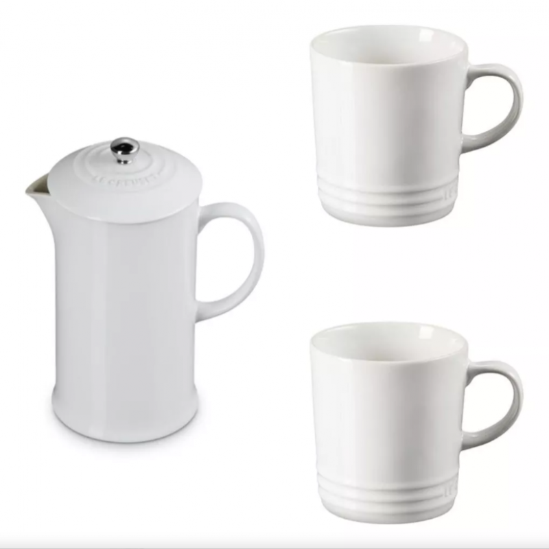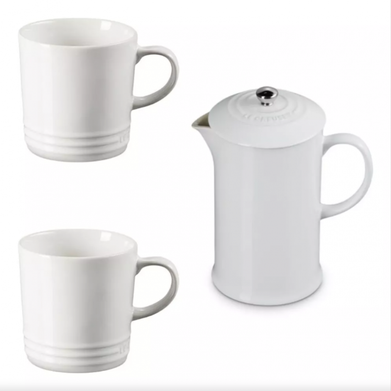 Le kreuset frantsuz press-lari va 2 ta oq 350ml krujka