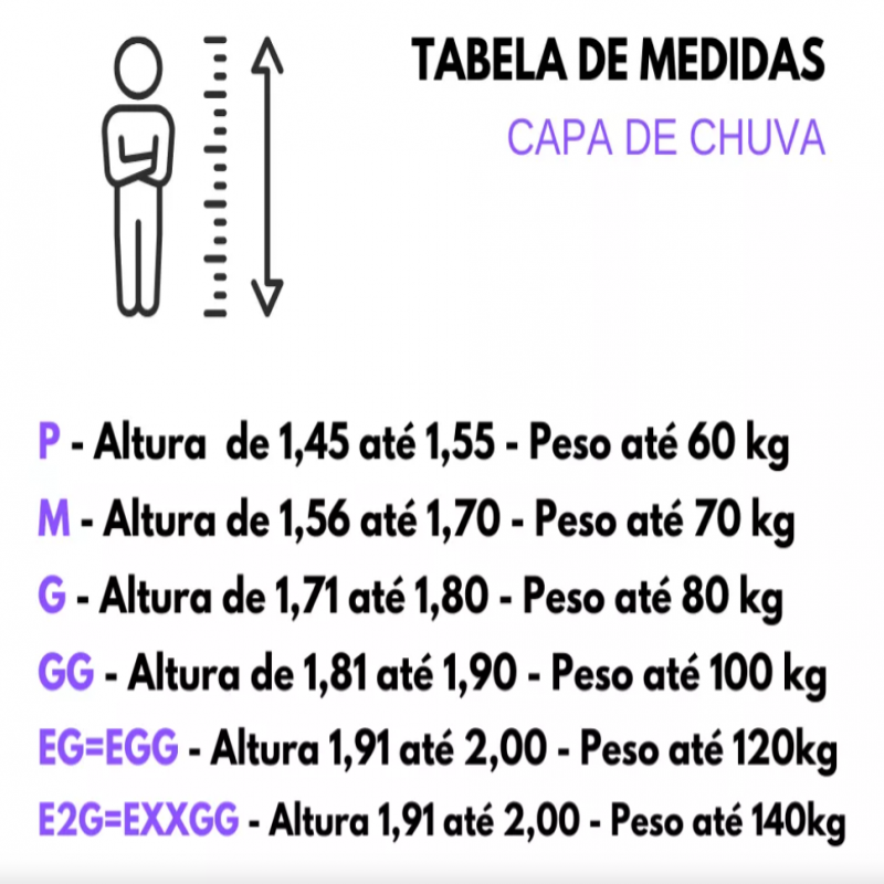 TAMANHO G > IDEAL:ALTURA 1,71 ~ 1,80 METROS E PESO ATÉ 80KG