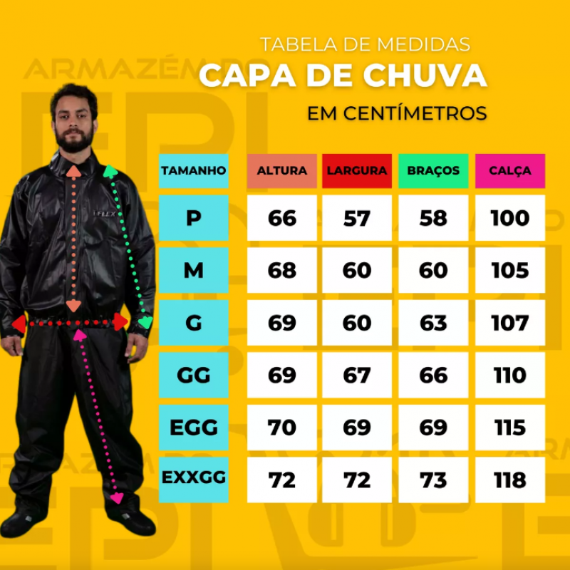 TAMANHO GG > IDEAL:ALTURA 1,81 ~ 1,90 METROS E PESO ATÉ 100KG