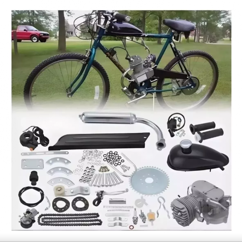 Velosiped dvigateli yig'ilishi va tezlashishi. 80cc dvigateli, tepaliklarga sig'inish va 60 km / soatgacha etib boradi.