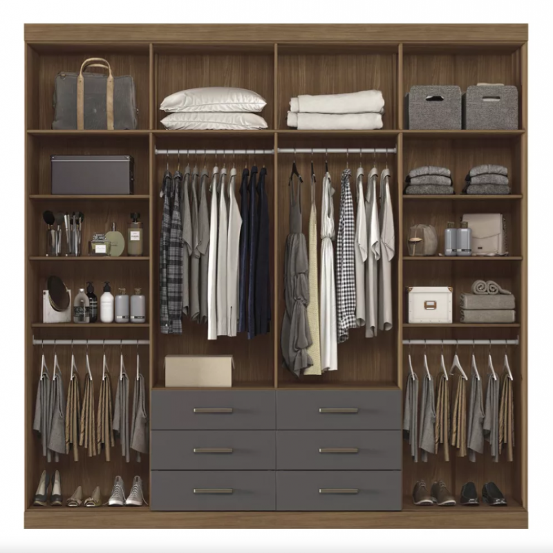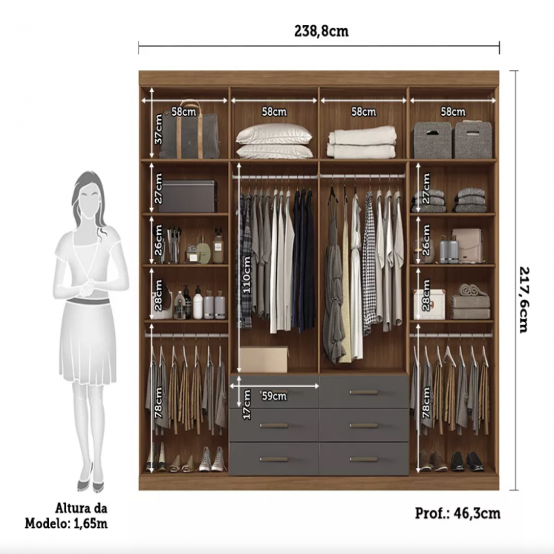 Barcha kiyimlaringiz uchun juda ko'p joy bo'lgan to'liq shkaf. Metall slaydlarga slaydga ega bo'lgan 06 ta keng sanktsiyalarga ega bo'lib, har kuni ochishni va yopishni osonlashtiradi. 04 alyuminiy ilmoqlilar / birinchi kursmenlar bilan ichki makonni tashkil etadi, chunki kiyim-kechak va katlanma kiyimlarni saqlash uchun 10 ta katta javonlarni qo'shadi.