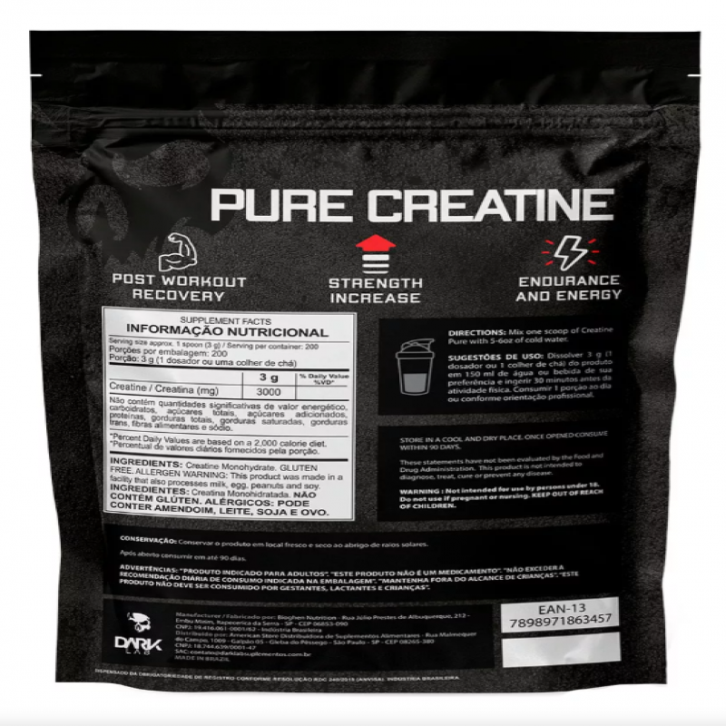 Ao escolher a Creatina da Dark Lab, você está optando por um suplemento comprovado por testes de pureza, garantindo que você aproveite todos esses benefícios com a mais alta qualidade. Eleve seu treinamento e alcance seus objetivos com o suporte excepcional dos produtos Dark Lab."