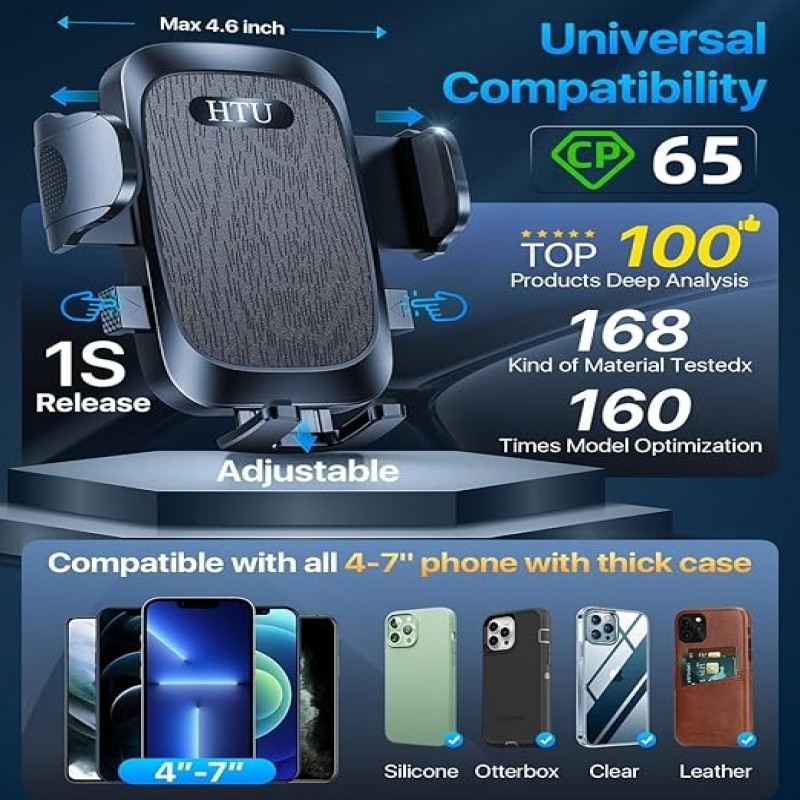 [Boa escolha: suporte de carro de alta qualidade confiável por mais de 2.500.000 usuários com mais de 15 anos] O suporte de telefone para carro Htu 2024 é certificado por todas as autoridades (Certificado internacional à prova de choque de grau militar, CP65, REACH, RoHS), com base no design exclusivo do Grandmaster (patente EUIPO), materiais duráveis e saudáveis de mais de 4.000 materiais e Indústria-Lei Testes de segurança ading (teste mensal de 5.000 + abertura/fechada; 10.000+ resistência à vibração; testes de estrada robusta de 100.000 km; teste de laboratório de -40.0 °C a 95.0 °C)